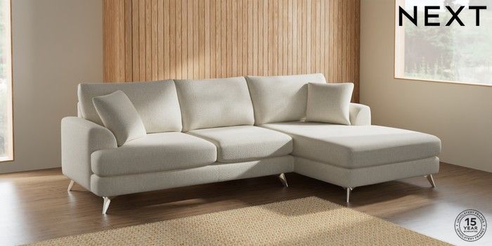 7.2.10 Parker Large Sofa Chaise - Right Hand Chunky Texture Oyster High Metal - Chrome | Made Click here to use our website with more accessibility support, for example screen readers