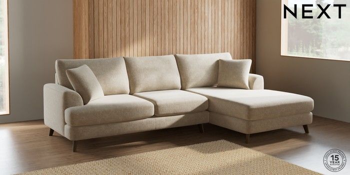 7.2.10 Parker Large Sofa Chaise - Right Hand Chunky Weave Cream Low Retro Tapered - Mid | Made Click here to use our website with more accessibility support, for example screen readers