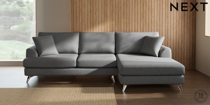 7.2.10 Parker Large Sofa Chaise - Right Hand Chunky Weave Mid Grey High Metal - Chrome | Made Click here to use our website with more accessibility support, for example screen readers