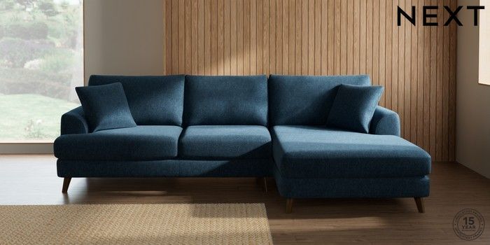 7.2.10 Parker Large Sofa Chaise - Right Hand Cotswold Chenille Dark Blue Low Retro Tapered - Mid | Made Click here to use our website with more accessibility support, for example screen readers