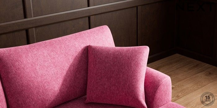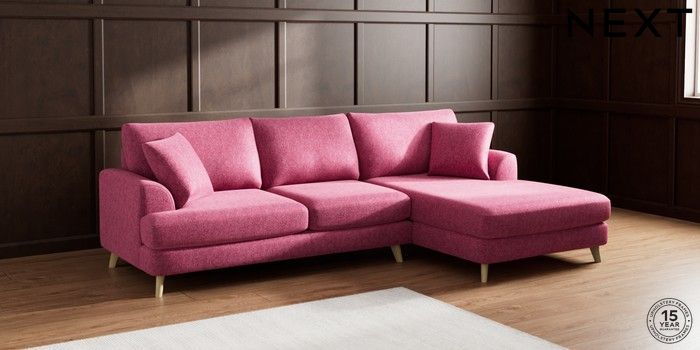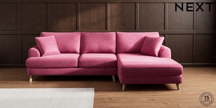 7.2.10 Parker Large Sofa Chaise - Right Hand Cotswold Chenille Dark Raspberry Pink Low Retro Tapered - Light | Made Click here to use our website with more accessibility support, for example screen readers