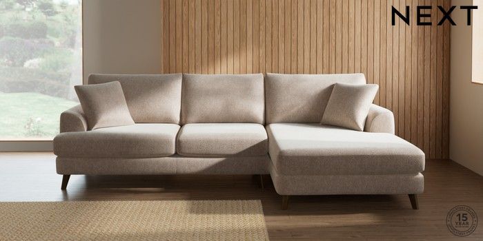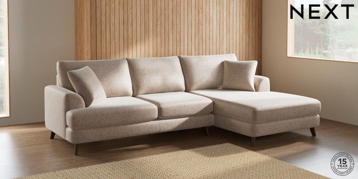 7.2.10 Parker Large Sofa Chaise - Right Hand Cotswold Chenille Light Natural Low Retro Tapered - Mid | Made Click here to use our website with more accessibility support, for example screen readers