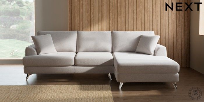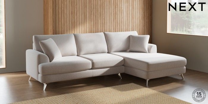 7.2.10 Parker Large Sofa Chaise - Right Hand Cotswold Chenille Oyster High Metal - Chrome | Made Click here to use our website with more accessibility support, for example screen readers
