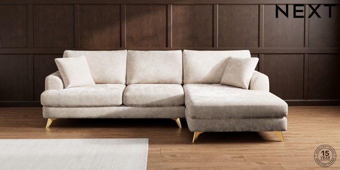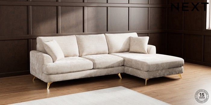 7.2.10 Parker Large Sofa Chaise - Right Hand Distressed Velour Mid Natural High Metal - Brass | Made Click here to use our website with more accessibility support, for example screen readers