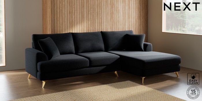 7.2.10 Parker Large Sofa Chaise - Right Hand Fine Chenille Easy Clean Black High Metal - Brass | Made Click here to use our website with more accessibility support, for example screen readers