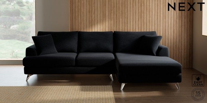 7.2.10 Parker Large Sofa Chaise - Right Hand Fine Chenille Easy Clean Black High Metal - Chrome | Made Click here to use our website with more accessibility support, for example screen readers