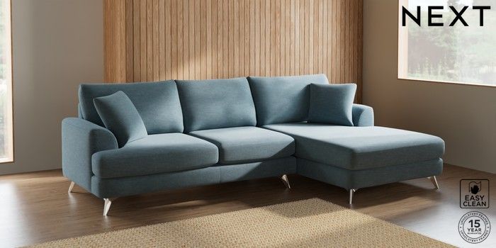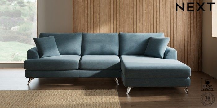7.2.10 Parker Large Sofa Chaise - Right Hand Fine Chenille Easy Clean Mid Blue High Metal - Chrome | Made Click here to use our website with more accessibility support, for example screen readers