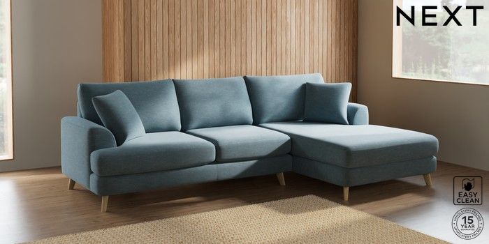 7.2.10 Parker Large Sofa Chaise - Right Hand Fine Chenille Easy Clean Mid Blue Low Retro Tapered - Light | Made Click here to use our website with more accessibility support, for example screen readers