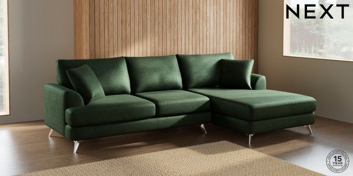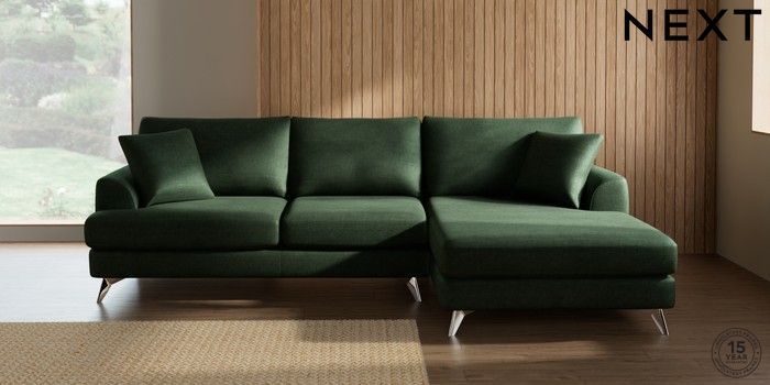 7.2.10 Parker Large Sofa Chaise - Right Hand Luxe Chenille Dark Green High Metal - Chrome | Made Click here to use our website with more accessibility support, for example screen readers
