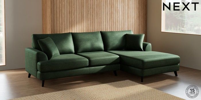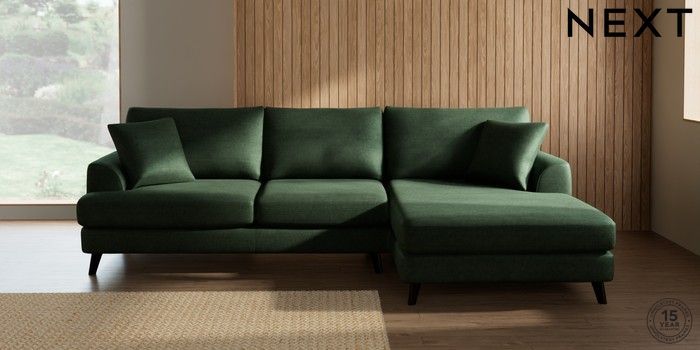 7.2.10 Parker Large Sofa Chaise - Right Hand Luxe Chenille Dark Green Low Retro Tapered - Dark | Made Click here to use our website with more accessibility support, for example screen readers