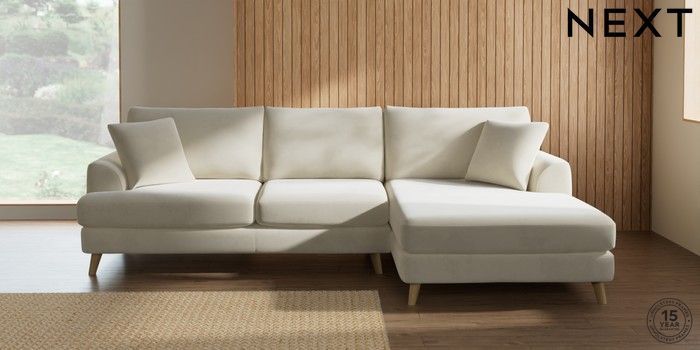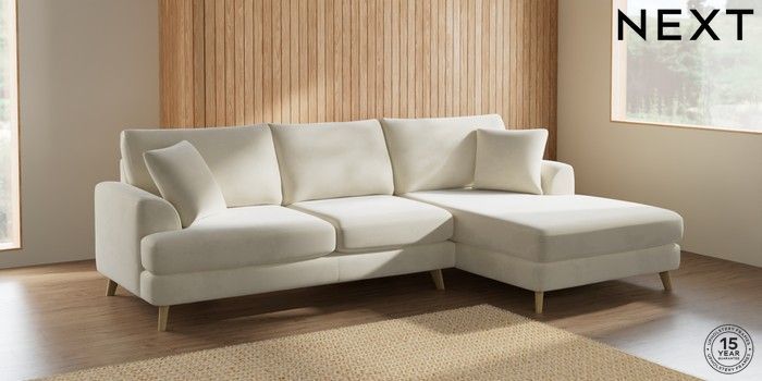 7.2.10 Parker Large Sofa Chaise - Right Hand Luxe Chenille Oyster Low Retro Tapered - Light | Made Click here to use our website with more accessibility support, for example screen readers