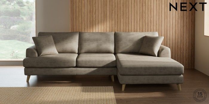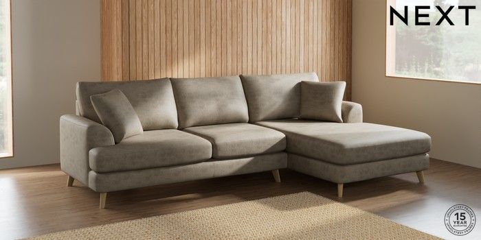 7.2.10 Parker Large Sofa Chaise - Right Hand Monza Faux Leather Easy Clean Mink Brown Low Retro Tapered - Light | Made Click here to use our website with more accessibility support, for example screen readers