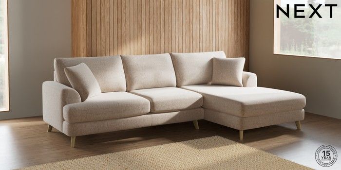 7.2.10 Parker Large Sofa Chaise - Right Hand Multi Weave Mid Natural Low Retro Tapered - Light | Made Click here to use our website with more accessibility support, for example screen readers