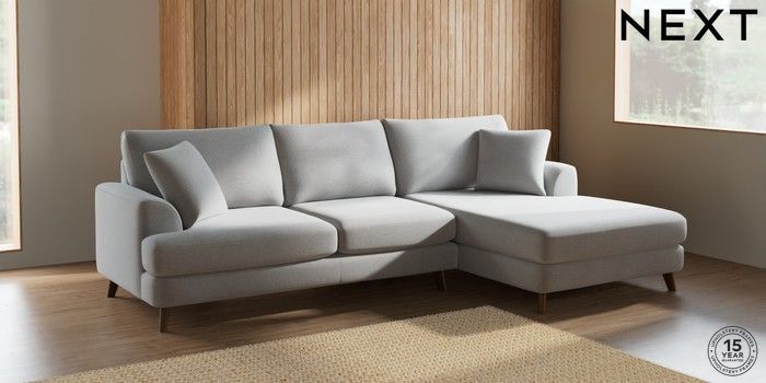 7.2.10 Parker Large Sofa Chaise - Right Hand Natural Mix Light Grey Low Retro Tapered - Mid | Made Click here to use our website with more accessibility support, for example screen readers
