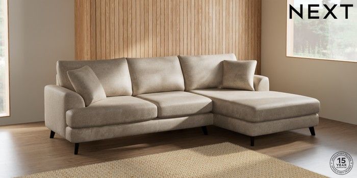 7.2.10 Parker Large Sofa Chaise - Right Hand Plush Chenille Light Natural Low Retro Tapered - Dark | Made Click here to use our website with more accessibility support, for example screen readers