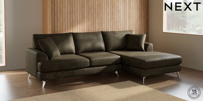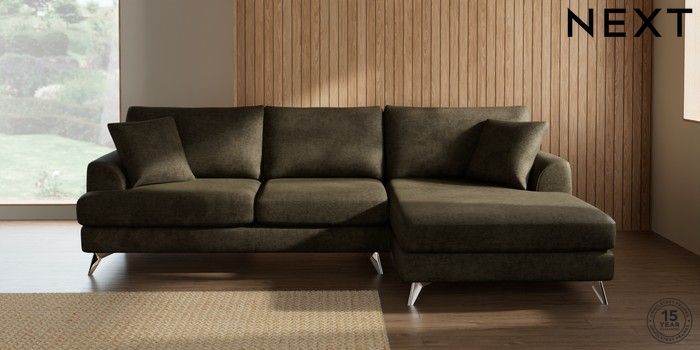7.2.10 Parker Large Sofa Chaise - Right Hand Plush Chenille Moss Green High Metal - Chrome | Made Click here to use our website with more accessibility support, for example screen readers