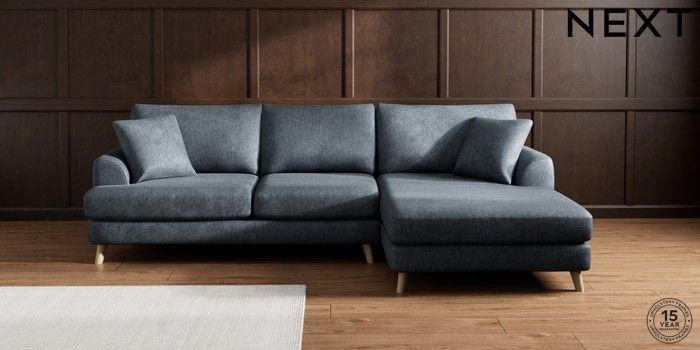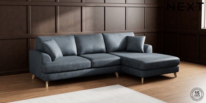 7.2.10 Parker Large Sofa Chaise - Right Hand Plush Chenille Slate Blue Low Retro Tapered - Light | Made Click here to use our website with more accessibility support, for example screen readers