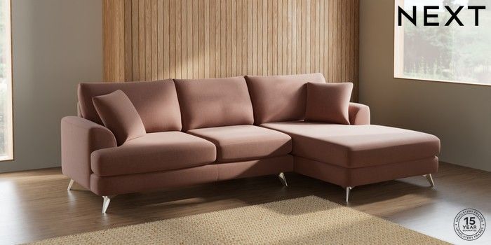 7.2.10 Parker Large Sofa Chaise - Right Hand Relaxed Linen Look Light Rust Brown High Metal - Chrome | Made Click here to use our website with more accessibility support, for example screen readers