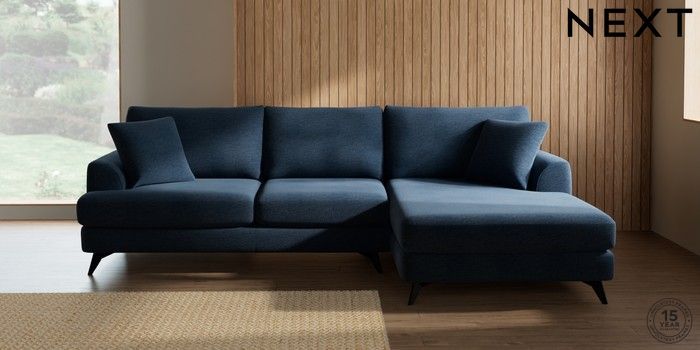 7.2.10 Parker Large Sofa Chaise - Right Hand Ripple Chenille Dark Blue High Metal - Black | Made Click here to use our website with more accessibility support, for example screen readers
