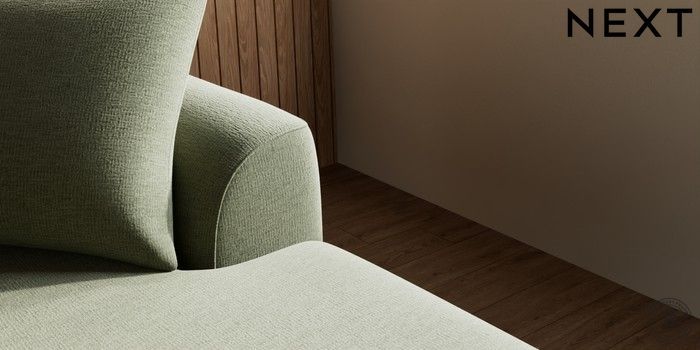 7.2.10 Parker Large Sofa Chaise - Right Hand Ripple Chenille Mid Moss Green Low Retro Tapered - Light | Made Click here to use our website with more accessibility support, for example screen readers