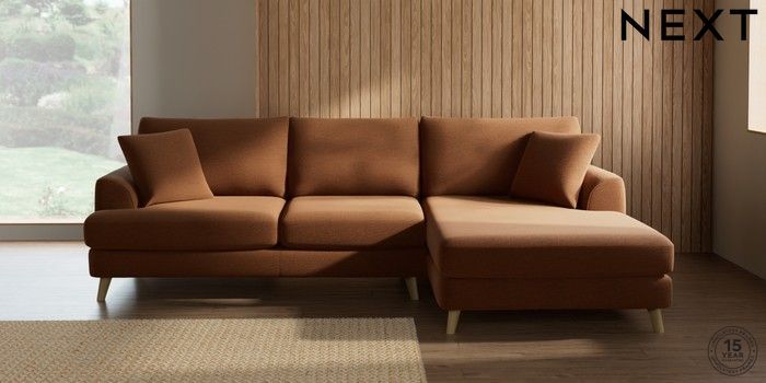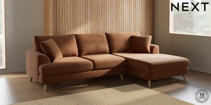 7.2.10 Parker Large Sofa Chaise - Right Hand Ripple Chenille Mid Rust Brown Low Retro Tapered - Light | Made Click here to use our website with more accessibility support, for example screen readers