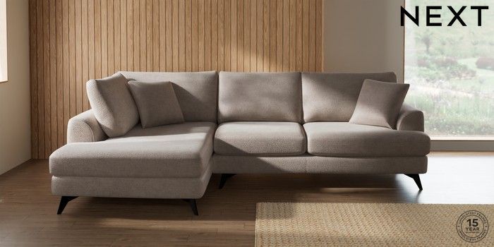 7.2.10 Parker Medium Corner Chaise - Left Hand Boucle Chenille Light Natural High Metal - Black | Made Click here to use our website with more accessibility support, for example screen readers