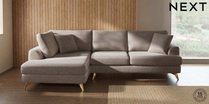 7.2.10 Parker Medium Corner Chaise - Left Hand Boucle Chenille Light Natural High Metal - Brass | Made Click here to use our website with more accessibility support, for example screen readers