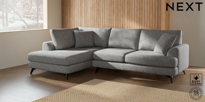 7.2.10 Parker Medium Corner Chaise - Left Hand Chunky Boucle Easy Clean Light Grey High Metal - Black | Made Click here to use our website with more accessibility support, for example screen readers