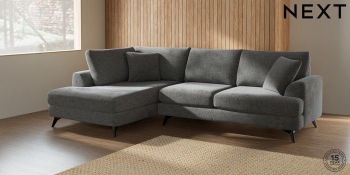 7.2.10 Parker Medium Corner Chaise - Left Hand Chunky Chenille Dark Grey High Metal - Black | Made Click here to use our website with more accessibility support, for example screen readers