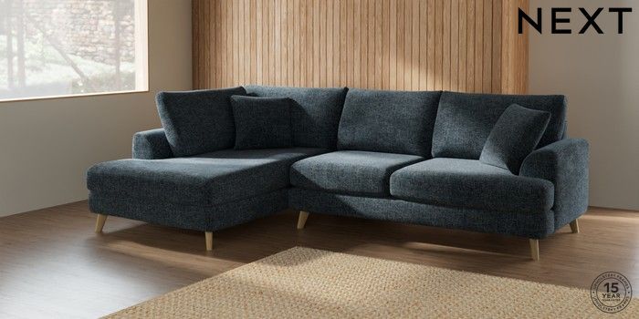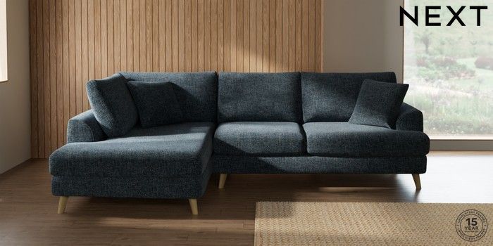 7.2.10 Parker Medium Corner Chaise - Left Hand Chunky Chenille Dark Navy Blue Low Retro Tapered - Light | Made Click here to use our website with more accessibility support, for example screen readers