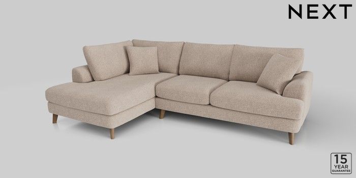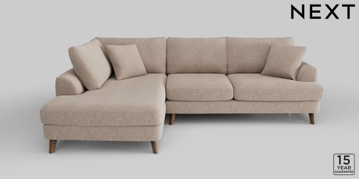 7.2.10 Parker Medium Corner Chaise - Left Hand Chunky Chenille Light Dove Low Retro Tapered - Mid | Made Click here to use our website with more accessibility support, for example screen readers