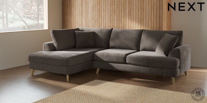 7.2.10 Parker Medium Corner Chaise - Left Hand Chunky Chenille Mink Brown Low Retro Tapered - Light | Made Click here to use our website with more accessibility support, for example screen readers