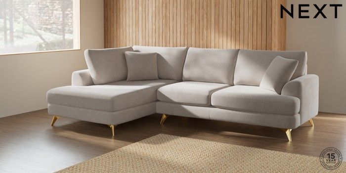 7.2.10 Parker Medium Corner Chaise - Left Hand Chunky Chenille Oyster High Metal - Brass | Made Click here to use our website with more accessibility support, for example screen readers