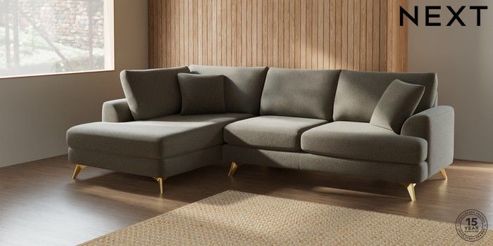 7.2.10 Parker Medium Corner Chaise - Left Hand Chunky Marl Light Olive Green High Metal - Brass | Made Click here to use our website with more accessibility support, for example screen readers