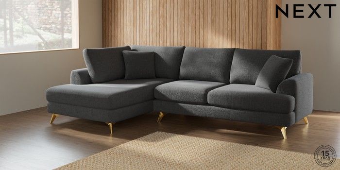 7.2.10 Parker Medium Corner Chaise - Left Hand Chunky Texture Dark Grey High Metal - Brass | Made Click here to use our website with more accessibility support, for example screen readers