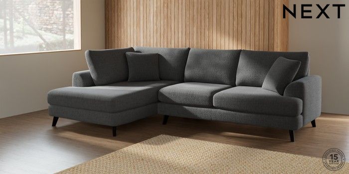 7.2.10 Parker Medium Corner Chaise - Left Hand Chunky Texture Dark Grey Low Retro Tapered - Dark | Made Click here to use our website with more accessibility support, for example screen readers