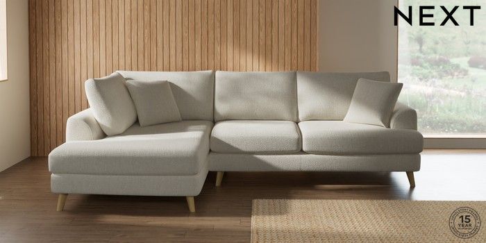 7.2.10 Parker Medium Corner Chaise - Left Hand Chunky Texture Oyster Low Retro Tapered - Light | Made Click here to use our website with more accessibility support, for example screen readers