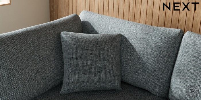 7.2.10 Parker Medium Corner Chaise - Left Hand Chunky Weave Mid Blue Low Retro Tapered - Dark | Made Click here to use our website with more accessibility support, for example screen readers
