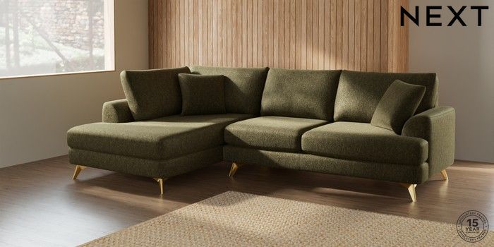 7.2.10 Parker Medium Corner Chaise - Left Hand Cotswold Chenille Dark Green High Metal - Brass | Made Click here to use our website with more accessibility support, for example screen readers