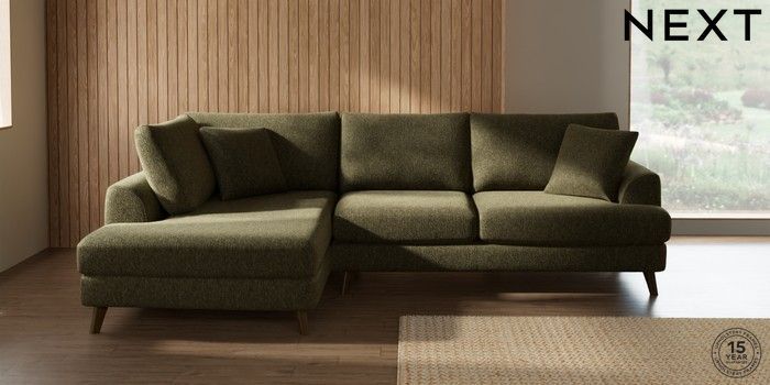 7.2.10 Parker Medium Corner Chaise - Left Hand Cotswold Chenille Dark Green Low Retro Tapered - Mid | Made Click here to use our website with more accessibility support, for example screen readers