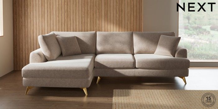 7.2.10 Parker Medium Corner Chaise - Left Hand Cotswold Chenille Light Natural High Metal - Brass | Made Click here to use our website with more accessibility support, for example screen readers