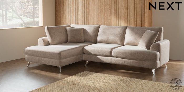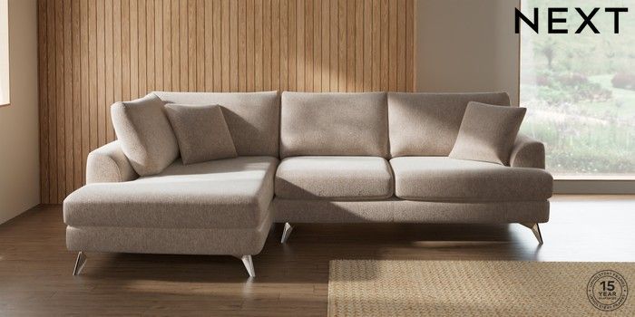 7.2.10 Parker Medium Corner Chaise - Left Hand Cotswold Chenille Light Natural High Metal - Chrome | Made Click here to use our website with more accessibility support, for example screen readers