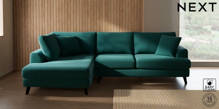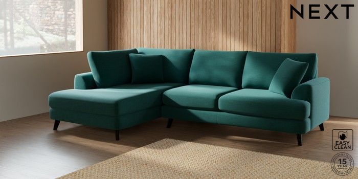 7.2.10 Parker Medium Corner Chaise - Left Hand Fine Chenille Easy Clean Dark Juniper Green Low Retro Tapered - Dark | Made Click here to use our website with more accessibility support, for example screen readers