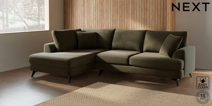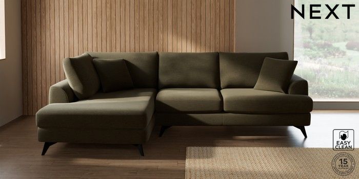 7.2.10 Parker Medium Corner Chaise - Left Hand Fine Chenille Easy Clean Dark Moss Green High Metal - Black | Made Click here to use our website with more accessibility support, for example screen readers