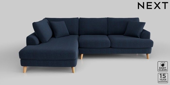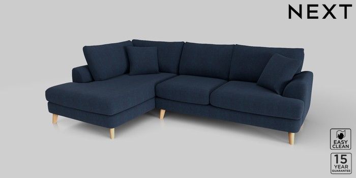 7.2.10 Parker Medium Corner Chaise - Left Hand Fine Chenille Easy Clean Dark Navy Blue Low Retro Tapered - Light | Made Click here to use our website with more accessibility support, for example screen readers