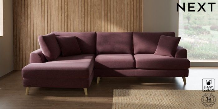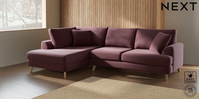 7.2.10 Parker Medium Corner Chaise - Left Hand Fine Chenille Easy Clean Mid Mulberry Purple Low Retro Tapered - Light | Made Click here to use our website with more accessibility support, for example screen readers