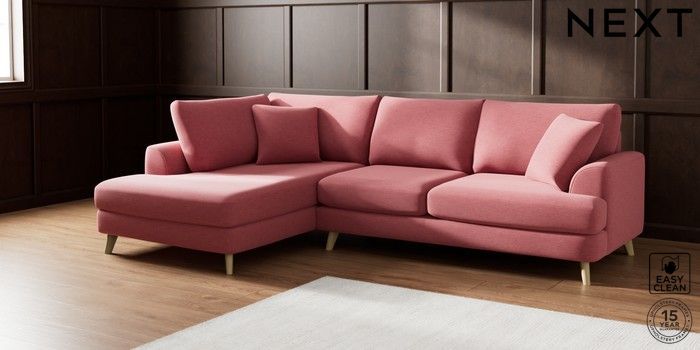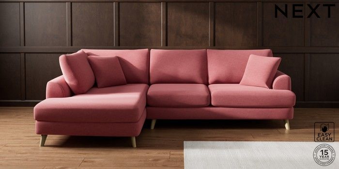 7.2.10 Parker Medium Corner Chaise - Left Hand Fine Chenille Easy Clean Mid Pink Low Retro Tapered - Light | Made Click here to use our website with more accessibility support, for example screen readers