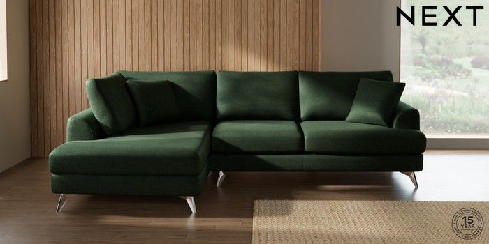 7.2.10 Parker Medium Corner Chaise - Left Hand Luxe Chenille Dark Green High Metal - Chrome | Made Click here to use our website with more accessibility support, for example screen readers