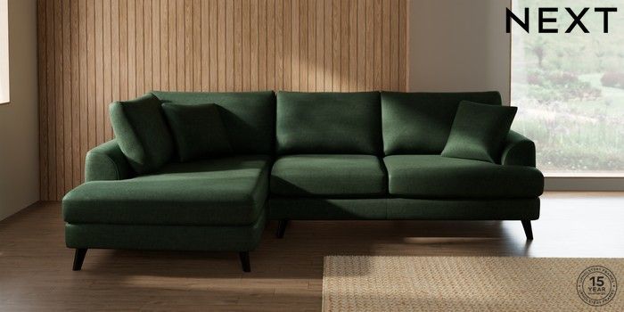 7.2.10 Parker Medium Corner Chaise - Left Hand Luxe Chenille Dark Green Low Retro Tapered - Dark | Made Click here to use our website with more accessibility support, for example screen readers