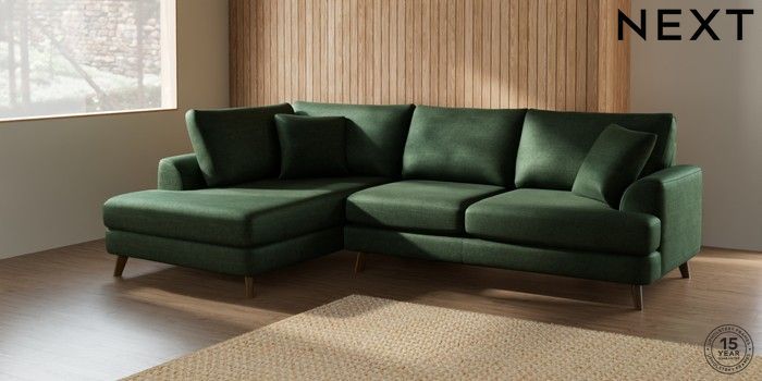 7.2.10 Parker Medium Corner Chaise - Left Hand Luxe Chenille Dark Green Low Retro Tapered - Mid | Made Click here to use our website with more accessibility support, for example screen readers
